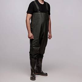 Классический рыбацкий полукомбинезон. Верх - из легкой водонепроницаемой ПВХ-ткани (винитол) крепится к базовому сапогу из ПВХ на современном итальянском оборудовании при помощи сварки током высокой частоты. Это гарантирует абсолютную водонепроницаемость.