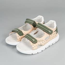 Анатомические сандалики для правильного формирования детской стопы со спортивной, гибкой и эластичной подошвой, выполненной из ЭВА. Данная модель имеет защищенную пяточную часть. Застежки-липучки наиболее удобны для малышей, анатомический подсводник способствует правильному формированию свода стопы, липучка на носке сандалика позволяет регулировать полноту модели. Стелька и подкладка 100% из натуральной кожи, верх — из искусственной кожи. Нежная расцветка и незатейливый (аккуратный) принт - идеальные составляющие для летней обуви для девочек!