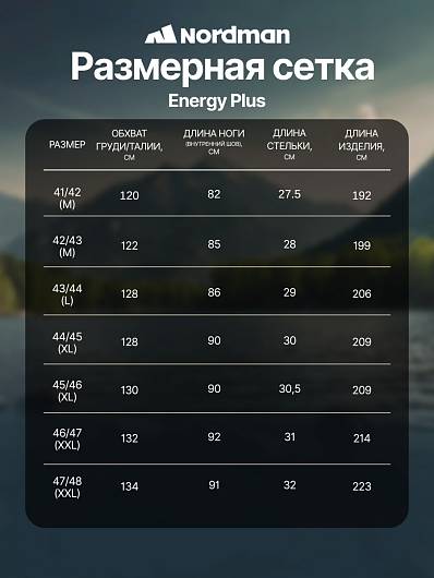 Вейдерсы из мембраны и неопрена Nordman Energy Plus предназначены для демисезонной рыбалки и охоты.