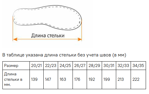 * В размерах с 20/21 по 26/27 содержание натуральной шерсти - 80%, с 28/29 по 34/35 – 30%.