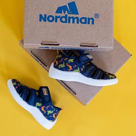 Текстильные тапочки Nordman Stars подойдут как для садика, так и для летних прогулок на улице. Они легкие. Подошва сделана из пористого материала полиуретан, поэтому легче аналогов из резины в 2 раза и меньше скользят. Можно стирать в машинке, быстро сохнут. Внутри стелька анатомически правильной формы c массажным эффектом. Удлиненная липучка для любого подъема детской ножки.