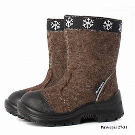 Фото Детские валенки Nordman c натуральным мехом на молнии с кожаным носом коричневые