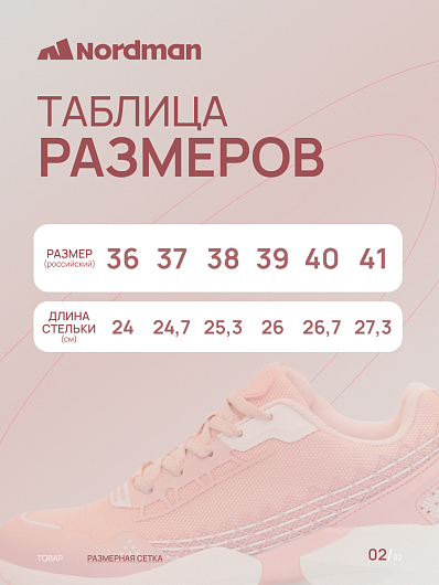 Кроссовки дышащие женские помогают поддерживать оптимальный микроклимат внутри обуви, поэтому ноги меньше устают во время длительной ходьбы или занятий спортом. Лёгкая и гибкая подошва из ЭВА отлично амортизирует шаг и снижает нагрузку на стопу и суставы. Благодаря этому кроссовки женские спортивные подойдут не только для тренировок, но и для повседневной носки. Мягкая амортизация делает эту модель удобной для длительных прогулок, бега, фитнеса и насыщенного дня. Текстильный верх мягко облегает стопу и обеспечивает комфортную посадку. Кроссовки текстильные женские не сковывают движения, повторяют форму ноги и позволяют чувствовать лёгкость при каждом шаге. Стильный розовый цвет делает кроссовки женские Нордман подходящими для модных образов. Кроссовки женские розовые легко сочетаются с джинсами, леггинсами, спортивными костюмами, шортами, платьями и одеждой в стиле кэжуал или спорт.